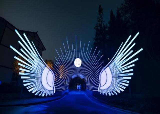 夜游巴山项目位于巴山大峡谷桑树坪,夜游巴山项目抓住“巴山夜雨 f 水墨达州”这个文化IP,将灯光秀、主题花灯、巡游彩车、漫天萤火、鬼屋等参观项目,彰显古巴国特色的文化元素融入“夜游巴山”的景象中,巴王巴后、巴国、图腾文字的现身表演更增加了街区夜游的互动体验感。