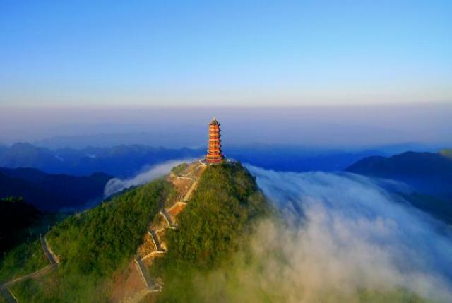 状元楼共七层,是罗盘顶的地标性建筑。飞檐斗拱,雕梁画栋力,凭借着35米的高度,在这大巴山中是鹤立鸡群,有着一种君临巴山、唯我独尊的气势和魄。状元楼的外形是楼阁式,在楼外有360度环形走廊,可以全方位观看大巴山的壮美风光,是看日出、云海、岭脊峰丛的最佳地。