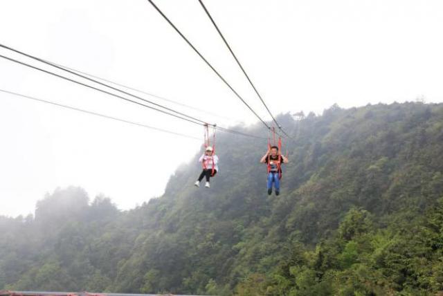 心跳飞索,位于巴山大峡谷罗盘云顶红豆杉栈道西站。滑索横跨罗盘云顶两高峰之间,徒步行走需要1小时才能到达,通过滑索只需要几分钟,堪称速度无极限。让你感受到自由带来的快感,感受飞翔带来的刺激。