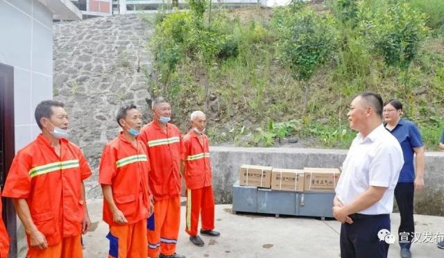 陈军一行先后前往明月大桥、惠民小区、县综合行政执法局机关等地,详细了解环卫工作日常运转、设施设备运行、队伍建设管理等情况,并为一线环卫工人送去了矿泉水、藿香正气液等防暑降温饮品,感谢他们为城市干净整洁付出的辛勤努力;叮嘱他们美化城市的同时,一定要注意自我防护,防止中暑。