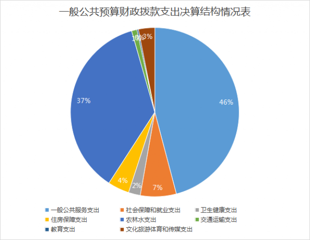 2023年一般公共预算财政拨款支出1770.98万元,主要用于以下方面:一般公共服务支出812.66万元,占45.89%;社会保障和就业支出121.87万元,占6.88%;卫生健康支出40.29万元,占2.28%;住房保障支出72.95万元,占4.12%;农林水支出644.61万元,占36.40%;交通运输支出18.20万元,占1.03%。教育支出5万元,占0.28%。文化旅游体育和传媒支出55.40万元,占3.13%。